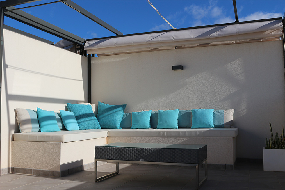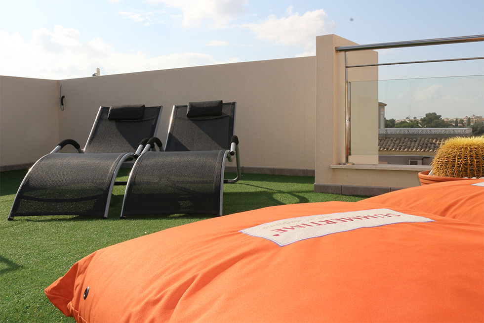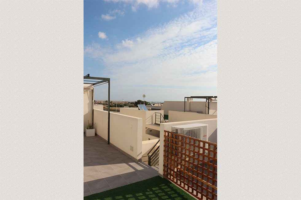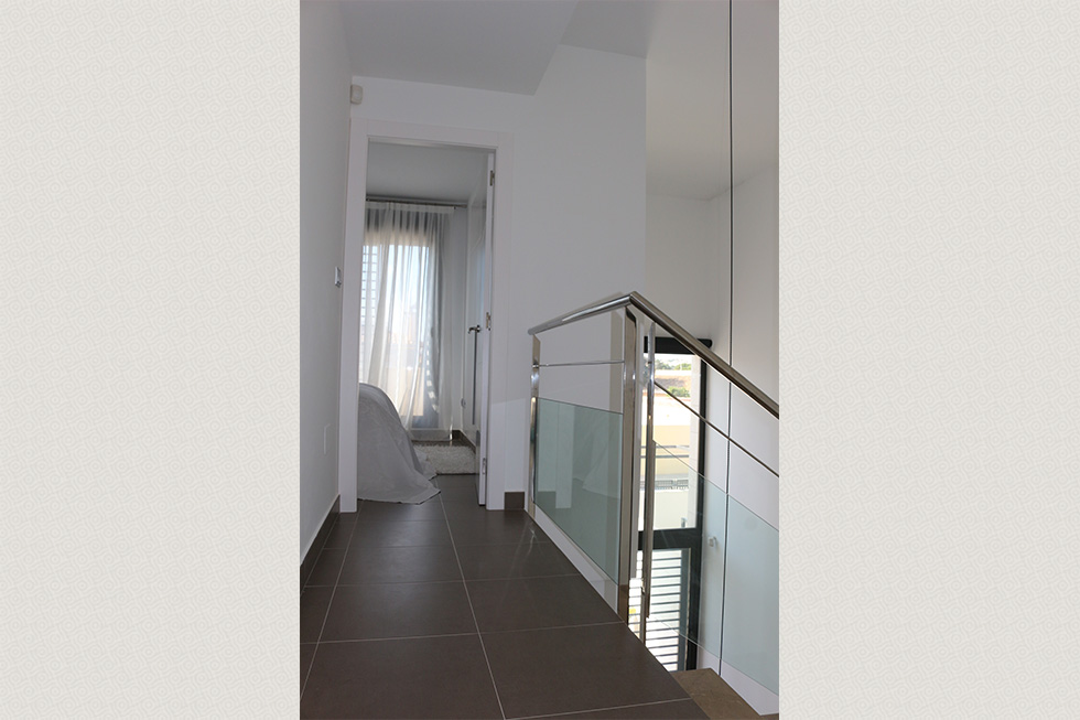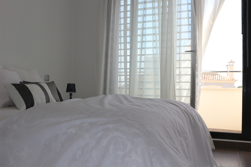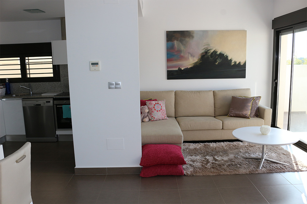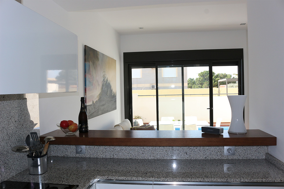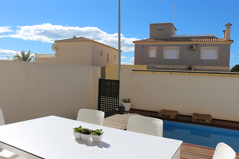 Située dans un endroit calme à Orihuela Costa (Costa blanca) entre les golfs ( Villa Martin, 3 km, Campmoamor , 4 km et Las Ramlblas, 4,5 km) et la mer (3 km), la maison se veut d'architecture contemporaine. ses espaces sont aménagés pour apporter la tranquillité et la douceur de vivre. Sa piscine privée peut être chauffée, celle du condominium, à quelques dizaines de mètres, se niche au coeur d’un serein jardin japonais.